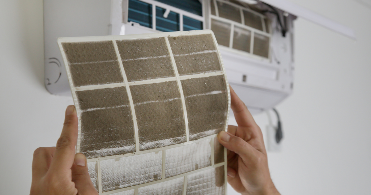 Filtros de ar saturados, com eficiência reduzida, contribuem para a recirculação de partículas contaminantes no ambiente interno.